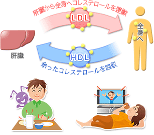 脂質異常(中性脂肪の増加、HDLコレステロールの低下、LDLコレステロールの増加)は動脈硬化を引き起こし、心筋梗塞などの心臓病にかかりやすいことがわかっています。